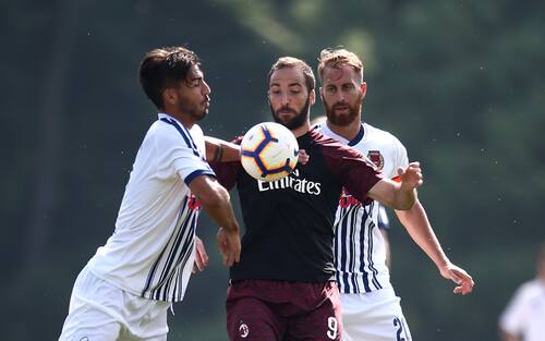 Così i rossoneri nella ripresa: Reina; Abate, Musacchio (dal 30' Merletti), Biglia (dal 25' Maldini), Simic; Bertolacci (dal 38' Frigerio), José Mauri, Bakayoko (dal 30' Torrasi); Castillejo, Higuain (dal 35' Tsatdjout), Borini