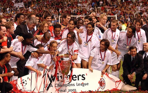 Il 28 maggio del 2003 Paolo Maldini alza la Coppa dalle grandi orecchie nel "Teatro dei sogni"