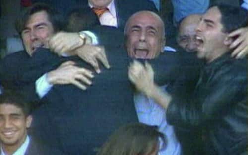 Al "Curi" si consuma una delle esultanze più sentite nella carriera di Adriano Galliani, abbracciato da Ariedo Braida e dal figlio