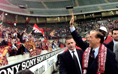 Nella festa del Meazza Berlusconi promette ai suoi tifosi di costruire un (altro) grande Milan