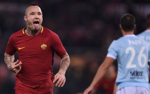 La linguaccia di Nainggolan nel derby del 18 novembre 2017. Vince la Roma grazie al gol del Ninja e di Perotti. Per la Lazio ci prova Immobile, ma non basta -