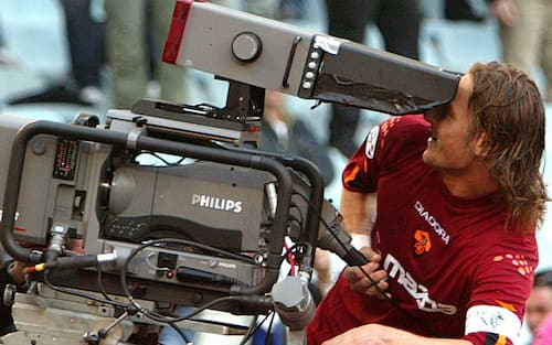 Ma fa meglio Francesco Totti, che dopo il pareggio ruba la telecamera a un cameraman e inquadra la Curva Sud festante –