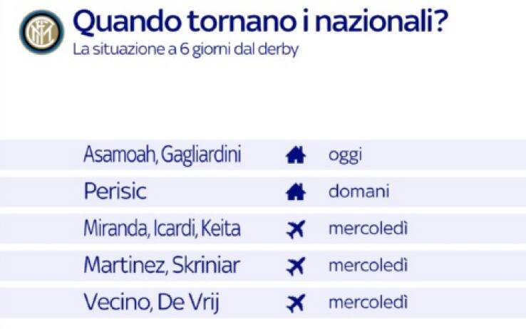Chi non è stato impiegato come Gagliardini ha mantenuto più energie. Quello sicuramente, ma da un punto di vista mentale non potrà essere al top. Caso contrario quello di Lautaro Martinez, che con l’Arabia Saudita ha giocato 57’ trovando anche la prima gioia personale con la maglia dell’Argentina. Stesso discorso per Vecino, in gol nella sconfitta del suo Uruguay contro la Corea del Sud. Perché, si sa, l’entusiasmo può battere la stanchezza. Soprattutto quando c’è un derby da giocare.