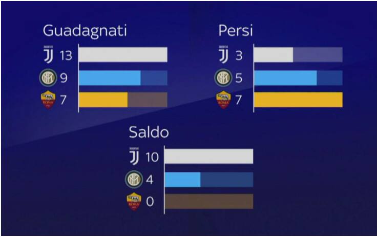 Serie ALa bravura dell'allenatore toscano si evidenzia anche nell'utilizzo delle sue risorse in panchina. Dopo le sostituzioni a gara in corso, infatti, i bianconeri hanno guadagnato 10 punti in stagione, più del doppio dell'Inter di Spalletti. Perfettamente in equilibrio, invece, il bilancio della Roma di Di Francesco