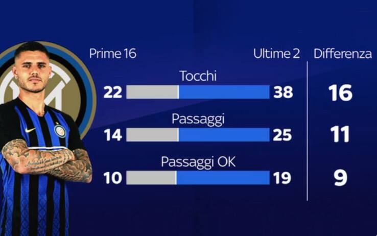 D’altronde le statistiche sono solo l’ulteriore conferma dell’analisi del Club. Maurito è cambiato nelle ultime partite e ora Spalletti è ancora più felice. Confrontando infatti le 18 partite giocate in stagione con più di un’ora nelle gambe (escludendo dunque solo i 13’ contro il Frosinone) il divario tra le prime giocate e le ultime due (Psv e Udinese) è netto: +16 sui tocchi totale, +11 di differenza nei passaggi e +9 su quelli completati. Gol, assist e sacrificio. E proprio così Icardi punta a prendersi, ancora di più, la sua Inter.