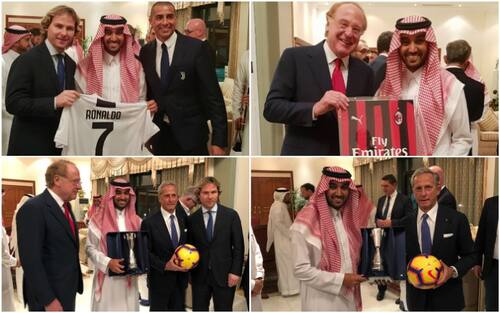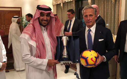 Le immagini della cena ufficiale che anticipa l'attesa partita di Gedda (Emirati Arabi) tra bianconeri e rossoneri. Nedved e Scaroni hanno consegnato le divise dei loro club al ministro dello Sport saudita