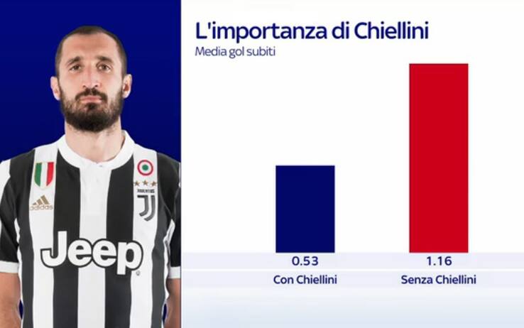 Non convince la Juve senza il suo capitano, leader difensivo dalle pesantissime assenze contro Atalanta in Coppa e Parma in Serie A: 6 le reti incassate da Allegri, allenatore orfano del perno della BBC. Quando Chiellini è in campo la media dei gol subiti dai bianconeri recita 0,53 reti a partita, dato che lievita a 1,16 quando non c'è il numero 3