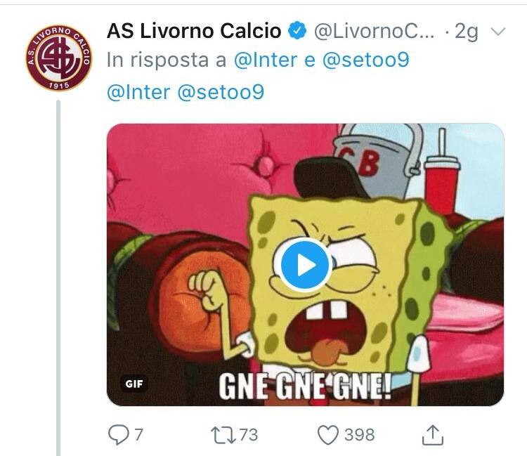 La squadra nerazzurra ha pubblicato il ricordo di una partita vinta nel 2010 contro il Livorno, che ha scatenato su Twitter un simpatico siparietto con la società amaranto e la storica rivale Pisa