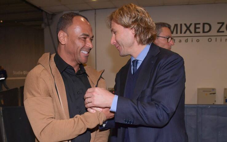 Incontro nel pre partita di Roma-Juventus tra il brasiliano e l'attuale vicepresidente bianconero. Stretta di mano e sorrisi. La foto scattata insieme ha fatto ritornare alla mente di molti quella super giocata del "Pendolino" in un derby del 2000