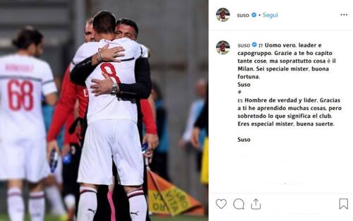 "Uomo vero, grazie a te ho capito cosa è il Milan". Firmato Suso