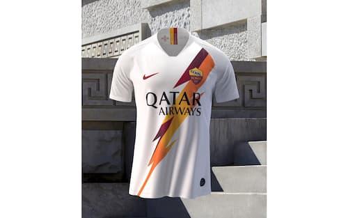 È ufficiale la maglia da trasferta della Roma per la stagione 2019/20, divisa bianca sulla quale domina un fulmine giallorosso: si tratta di un elemento della mitologia romana dettato da Giove che diventa protagonista del secondo kit, completato da pantaloncini rossi e calzettoni bianchi