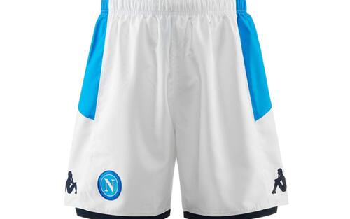Una parte di azzurro ai lati e i dettagli neri nella parte bassa caratterizzano i pantaloncini del terzo kit del Napoli, dominato dal bianco
