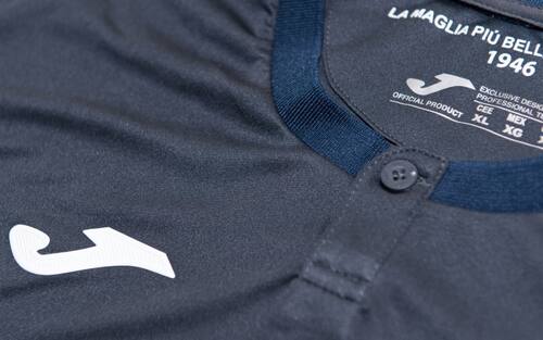 Il dettaglio in blu del colletto: immancabile la scritta "la maglia più bella del mondo", già presente nella prima e nella seconda divisa