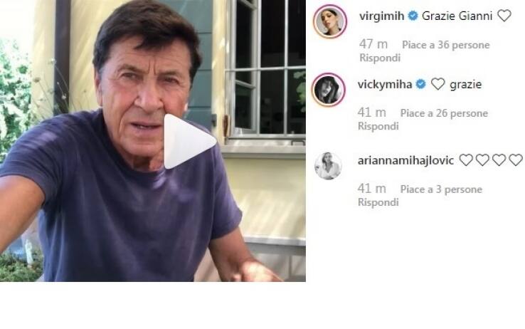 Al post di Gianni Morandi hanno risposto, ringraziando, le figlie dell’allenatore del Bologna, Virginia e Viktorija e la moglie Arianna.