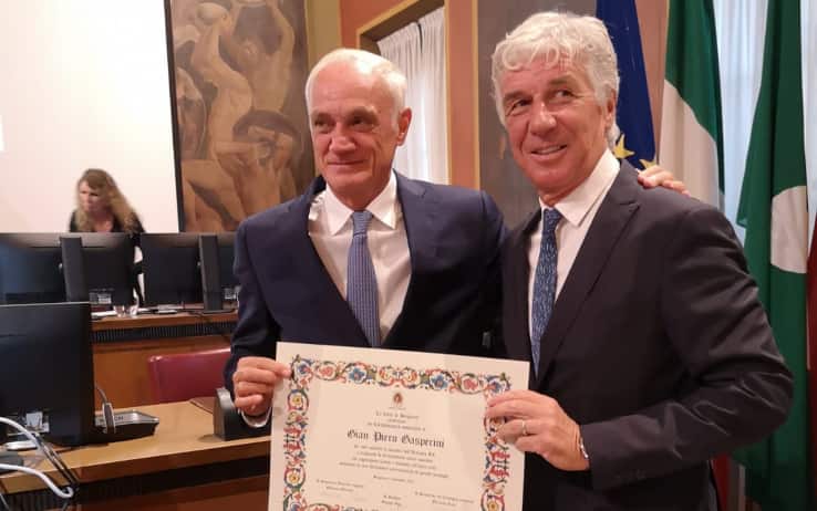 Grande cerimonia al Consiglio comunale di Bergamo: presenti anche il presidente nerazzurro Percassi e il ds Spagnolo. Poi il sindaco Gori ha consegnato la pergamena a un commosso Gasperini, "per aver guidato l'Atalanta a traguardi di straordinario valore sportivo che aggiungono lustro e visibilità all'intera città"