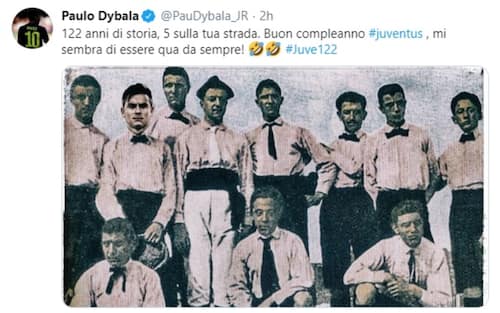 E infine c'è Paulo Dybala che, su Twitter, ha pubblicato un simpatico fotomontaggio di sé stesso nella Juve del passato. "122 anni di storia, 5 sulla tua strada - ha scritto la Joya -. Buon compleanno Juventus, mi sembra di essere qua da sempre"