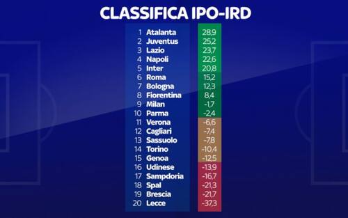 1°. ATALANTA - differenza IPO-IRD: +28,9 (classifica reale: 6° posto)