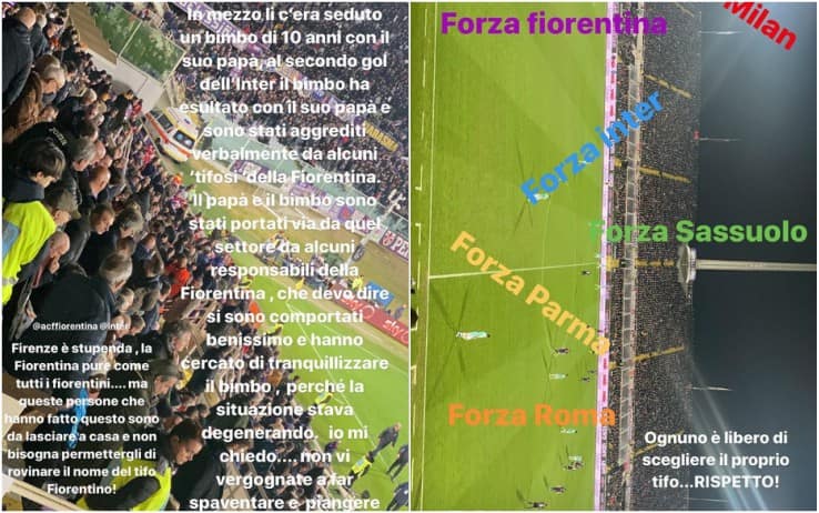 Bruttissimo episodio accaduto nella tribuna del Franchi durante la partita tra Fiorentina e Inter: subito dopo il gol del 2-0 di Laataro (poi annullato dal Var), un piccolo tifoso nerazzurro è stato aggredito verbalmente da alcuni sostenitori viola per aver esultato insieme al padre: il piccolo è scoppiato in lacrime e i due sono stati costretti a cambiare settore dello stadio per poter continuare a vedere la partita