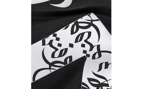 A impreziosire la casacca, la tradizionale calligrafica araba, progettata in collaborazione con un famoso artista di calligrafia saudita-marocchina, Shaker Kashgari