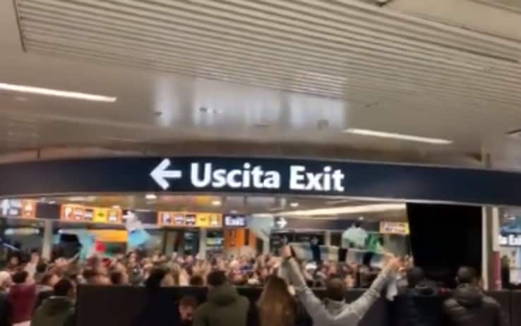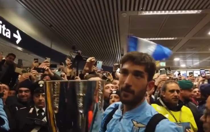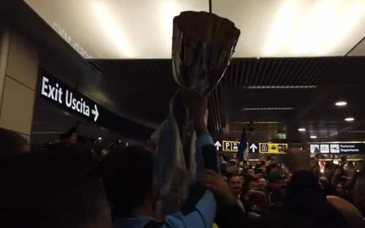 I biancocelesti sono rientrati in Italia poco dopo le 6 del mattino dopo aver conquistato la Supercoppa e ad attenderli hanno trovato circa un migliaio di tifosi che hanno accolto la squadra tra cori e bandiere