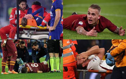 ALESSANDRO FLORENZI. Ben due gli infortuni al ginocchio patiti dal capitano dei giallorossi. Il primo il 26 ottobre del 2016, durante Sassuolo-Roma (legamento crociato del ginocchio sinistro) e poi di nuovo il 17 febbraio successivo, a pochi giorni dal suo rientro in squadra