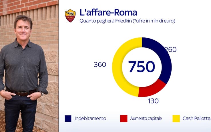 È in dirittura d'arrivo la cessione della Roma a Dan Friedkin. Chiusa la due diligence, si andrà ora verso la stesura dei contratti. Una situazione che dovrebbe portare alla firma nel mese di febbraio. La cessione societaria influirà, ovviamente, sulla gestione del mercato, dove non verranno fatti particolari investimenti economici. Le cifre complessive si aggirano intorno al 750 milioni di euro. Di questi, 260 andranno a coprire i debiti della società, mentre 130 saranno utili per l'aumento di capitale previsto per i prossimi giorni.