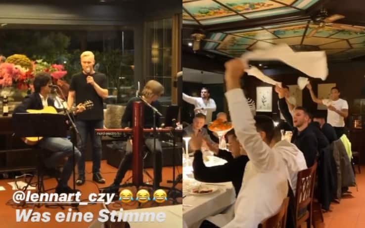 Serie AIl difensore italiano e il laterale tedesco protagonisti durante una festa di squadra: Caldara canta "Ragazzo fortunato" di Jovanotti, Gosens intona un testo di Ed Sheeran. I compagni li promuovono. A filmare il tutto ci pensa il Papu Gomez. Rito d'iniziazione canoro davanti ai compagni anche per Czyborra