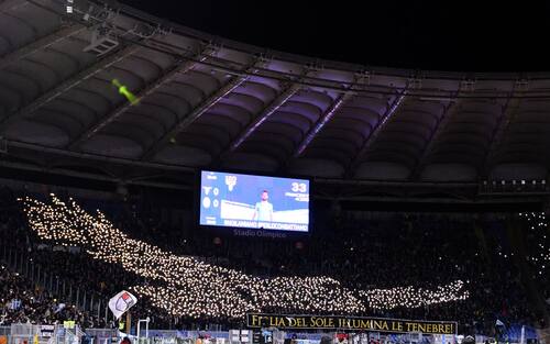 Grande atmosfera all'Olimpico per il recupero della 17^ giornata in Lazio-Verona. I tifosi della squadra di Inzaghi hanno "disegnato" una grande aquila con la torcia dei propri smartphone. Solo 0-0 il risultato finale