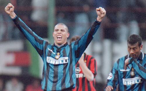 RONALDO. Non poteva mancare il Fenomeno nel ristretto club di bomber nerazzurri, stranieri e specialisti nel derby. L’avvento del brasiliano all’Inter risale all’estate 1997, 48 miliardi di lire (28 milioni di euro) versati nelle casse del Barcellona per assicurarsi un 21enne dall’impatto straordinario nel calcio europeo
