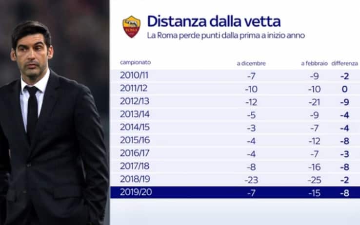Serie A, Roma e la crisi di inizio anno: i numeri