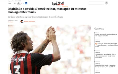 TELEVISÃO INDEPENDENTE TVI - In Portogallo anche il canale televisivo rilancia per parole di Maldini: "Ho provato ad allenarmi, ma dopo 10 minuti non ce la facevo più".