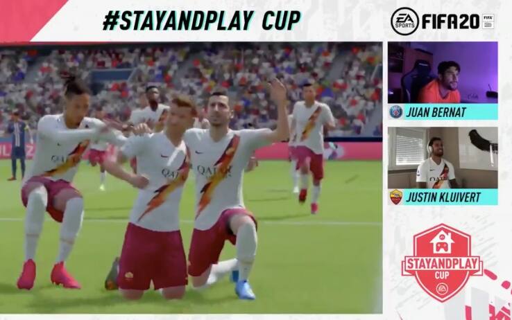 Justin Kluivert che fa segnare Dzeko e Pellegrini, a suo modo due assist, anche se stavolta non arrivano tramite il campo ma tramite il joypad. Magia della Stay and Play Cup, il torneo organizzato da EASports per raccogliere fondi per l’emergenza coronavirus, che mette uno contro l’altro a Fifa20 calciatori da ogni parte d’Europa. Tabellone classico, scontro diretto, chi vince avanza, chi perde è eliminato. La prima partita, agli ottavi di finale, metteva di fronte al talento olandese della Roma il terzino spagnolo del PSG Juan Bernat, in uno scontro dall’odore di Champions.