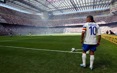 IL RITIRO | Il maggio del 2004 segna il suo passo d'addio. Contro il Milan, a San Siro, Baggio gioca la sua 456^ e ultima gara in Serie A. Il pubblico rossonero tributa, con un doveroso omaggio, uno straordinario campione che chiude la sua carriera dopo 22 indimenticabili stagioni. La scena è tutta per lui: una standing ovation e un po' di lacrime lo accompagnano all'uscita dal campo al minuto 84'