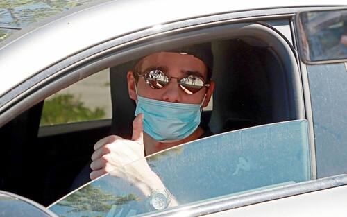 I giocatori - qui in foto l'arrivo di Federico Peluso - si sono alternati durante la giornata: sono arrivati già cambiati e tornati a casa per farsi la doccia, così come previsto dalle linee guida.