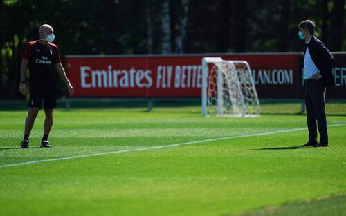 Presenti, a osservare, anche Pioli e il ds Massara, rispettosi del distanziamento sociale