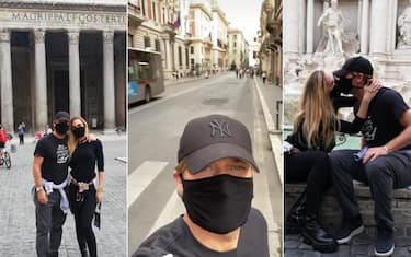 Bacio in mascherina a Fontana di Trevi: un altro momento da ricordare in questa specialissima domenica (foto Instagram @ilaryblasi).