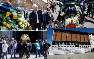 Un centinaio di tifosi, tutti con la mascherina e ben distanziati. La storica maglia numero 11 nerazzurra. Lo striscione dei tifosi: "Con l'Inter nel cuore fino all'ultimo, ciao Mariolino". Presenti Moratti, Marotta, Zanetti, Beccalossi, Cordoba e Antonello per l'addio all'artista della Grande Inter