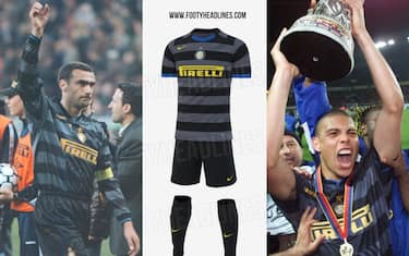 Secondo il sito Footy Headlines, specializzato nelle anteprime delle divise da calcio, la terza maglia dell'Inter 2020-2021 potrebbe essere un omaggio alla squadra che vinse la Coppa Uefa nel 1998, quella di Ronaldo (il Fenomeno) e del compianto Gigi Simoni (Foto da FootyHeadlines)