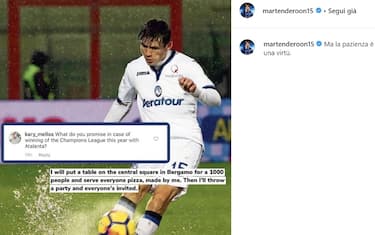 La voglia di scherzare con i propri follower è una costante nel rapporto di De Roon con i social: a fine novembre 2019, dopo la vittoria per 3-0 nel derby di Brescia, il centrocampista olandese aveva postato un video con la calda accoglienza in città dei tifosi bergamaschi. "Essere accolti così significa che ho bisogno di una nuova macchina ma ne vale la pena - aveva scritto - vincere il derby non ha prezzo". Dopo il successo per 3-2 sul Verona, il 29enne aveva invece postato un selfie con Djimsiti, dicendosi ispirato dal famoso selfie di Totti nel derby tra Roma e Lazio di gennaio 2015. Per celebrare la vittoria dell'andata degli ottavi di finale di Champions contro il Valencia, De Roon aveva invece postato una sua foto mentre calciava un pallone in campo e il testo: "Quando batti il Valencia in Champions League, ma sembri un giocatore della Sunday League" con riferimento alla lega dilettantistica inglese. Uno dei post recenti più cliccati risaliva al 23 aprile: "Se vinciamo la Champions League, pizza per 1000 persone fatta da me, e poi invito tutti a una festa" era stata la risposta a una domanda fatta su Instagram da un tifoso. Dopo il 3-2 alla Lazio, sui social è stato ancora De Roon-show.