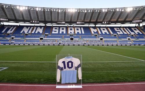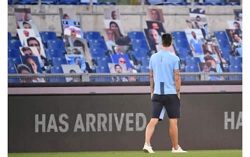 E poi la "10" e la grande scritta: "Tu non sarai mai sola", riprendendo l'inno dei biancocelesti.