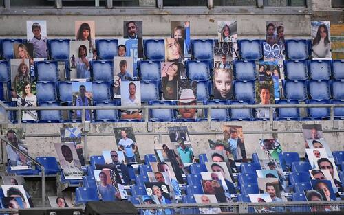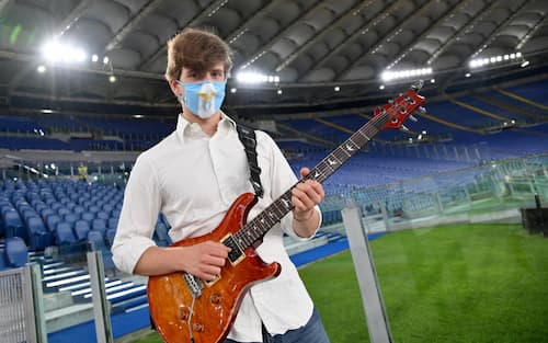 Prima dell'inizio esibizione di Jacopo Mastrangelo che, con la propria chitarra, nelle scorse settimane ha fatto notizia, offrendo esibizioni divenute poi virali sui social su una terrazza di piazza Navona. Per l'occasione, mentre alle sue spalle scorrevano delle frasi dedicate alla memoria delle persone decedute a causa del Coronavirus, ha intonato 'Penence', un frammento della colonna sonora del film 'Mission', composta dal maestro Ennio Morricone.