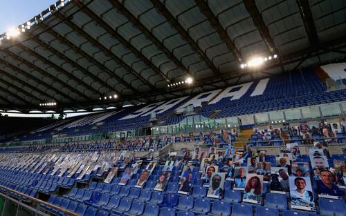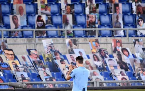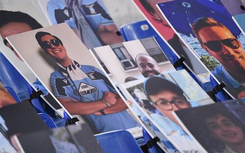 Sulle tribune dell'Olimpico sono anche stati posizionati i cartonati dei tifosi.