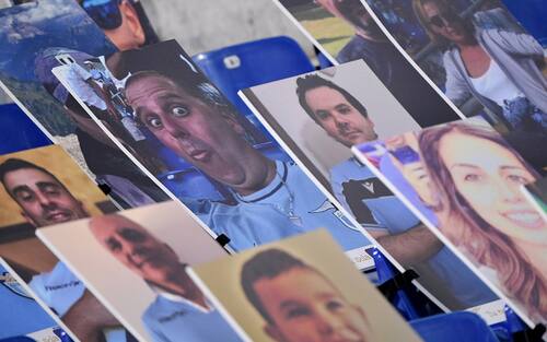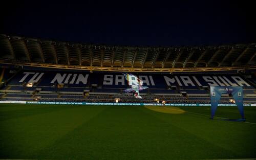Prima della partita è arrivato il messaggio di incoraggiamento per il campione ricoverato ancora in gravi condizioni a Siena. La scritta è comparsa nella striscia dedicata solitamente alla pubblicità. Sulle tribune dell'Olimpico sono anche stati posizionati i cartonati dei tifosi, tra cui due illustri: Anna Falchi e Jessica Immobile. E poi la grande scritta: "Tu non sarai mai sola"