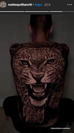 Il 19 luglio aveva festeggiato il suo primo gol con la maglia del Napoli grazie a una grande esecuzione da fuori area nella vittoria per 2-1 contro l'Udinese, una settimana dopo ha approfittato del giorno di riposo concesso da Rino Gattuso dopo il 2-0 al Sassuolo per coltivare una sua grande passione: i tatoo. Matteo Politano ha pensato di fare le cose in grande, facendosi disegnare un'enorme faccia di leopardo sull'intera schiena. Un'opera con tanti dettagli, realizzata dopo otto ore di lavoro, come raccontato attraverso le Instagram Stories dallo stesso attaccante, arrivato in azzurro dall'Inter nel corso del calciomercato di gennaio.