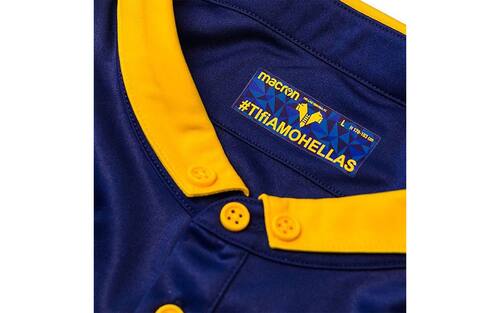 Il backneck è personalizzato con il nuovo logo del club con la grafica che riprende quella della maglia e il claim #TIfiAMOHELLAS