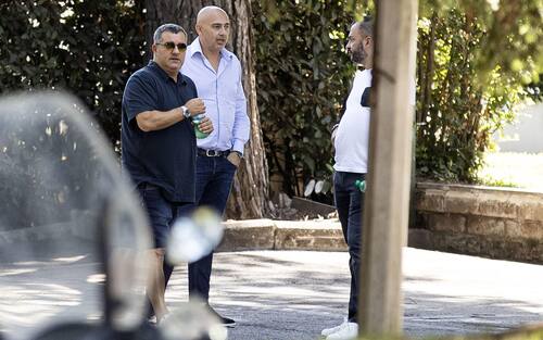 Conciliabolo tra lo stesso Raiola e Morgan De Sanctis, dirigente giallorosso