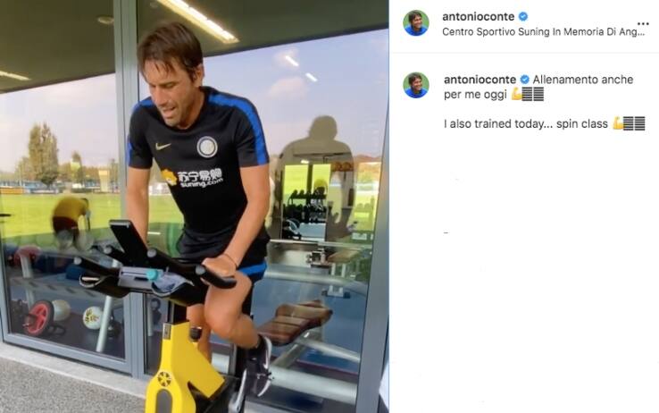 Inter, Conte si allena sulla cyclette. VIDEO