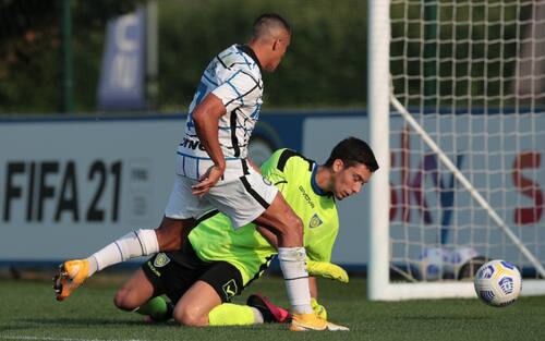 Il sesto gol della partitella d'allenamento lo ha realizzato Salcedo: gol a porta vuota per l'attaccante, servito solo a centro area da Lautaro Martinez