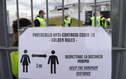 Le indicazioni delle misure di sicurezza da rispettare, appese fuori dai cancelli.