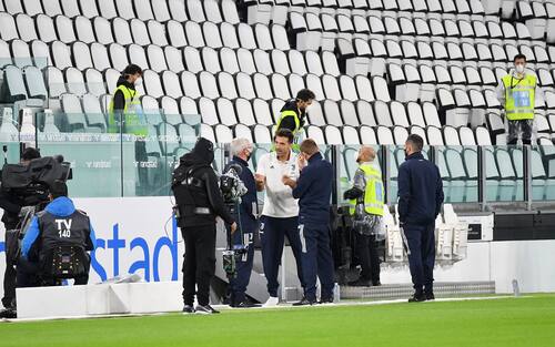 Juve allo stadio, così come la terna arbitrale guidata da Doveri. Presenti anche gli steward, altri addetti ai lavori e qualche tifoso tra i mille che potevano prendere parte alla partita. Sono scesi in campo alcuni giocatori bianconeri. Napoli assente. Il racconto fotografico della serata